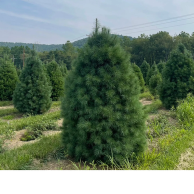 The White Pine thrives in full sun and is known for it's soft blue-green needles. It can grow to over 100 ft and can also be uses for a planted tree or purchased as a Christmas tree.